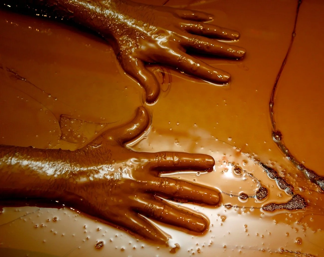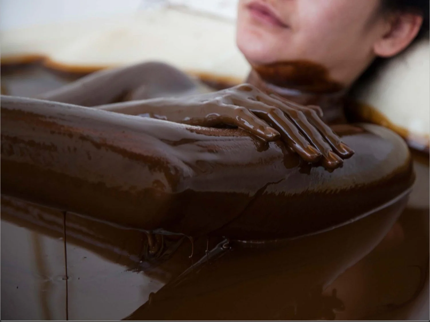 Руки пациента в нефтяной ванне. Санаторий в Нафталане. Азербайджан