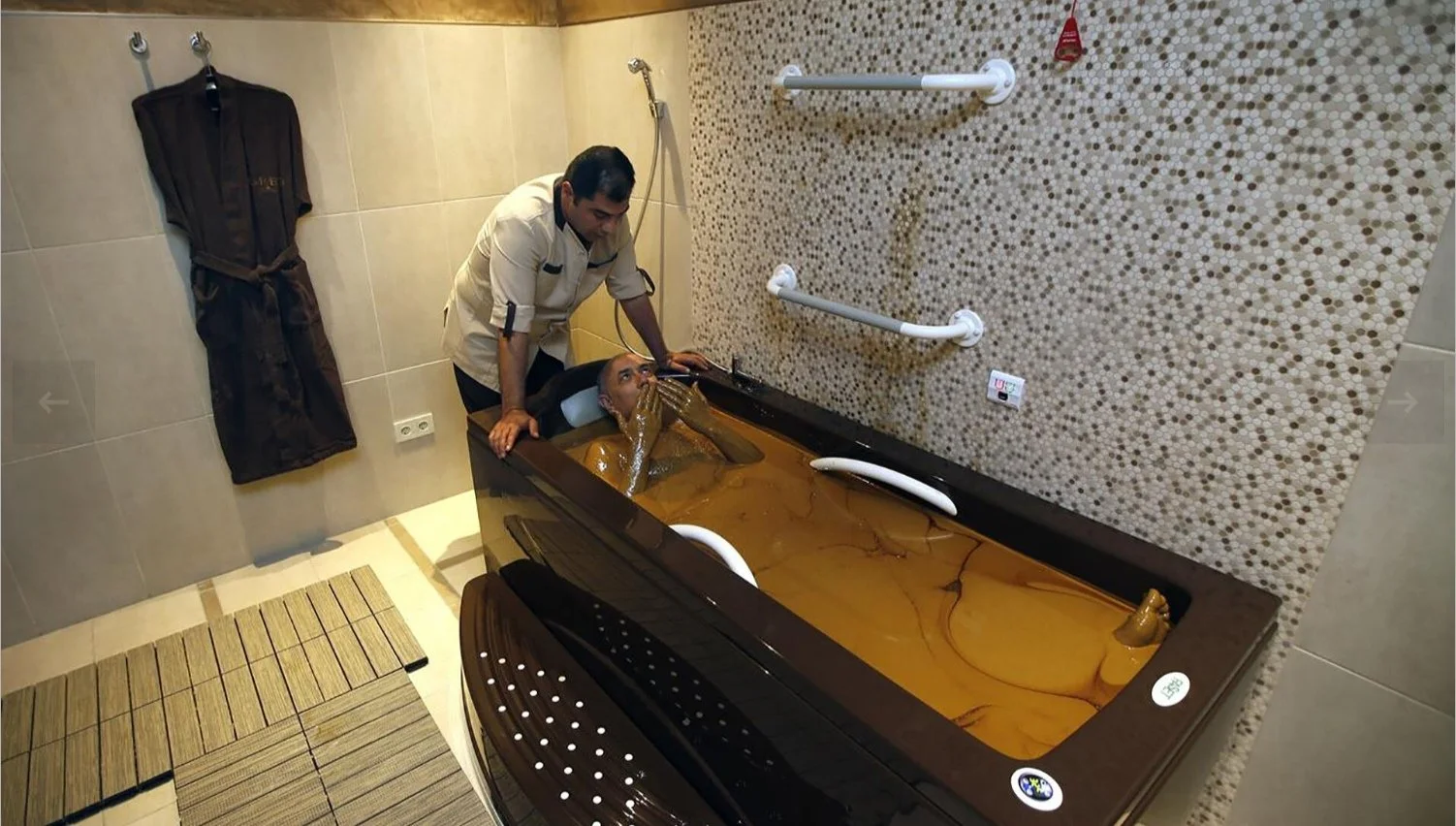 Подойдя поближе, он решился спросить о таком необычное мы поведении людей. Местные не только рассказали ему о чудодействественных свойствах этой нефти, но и научили методам лечения.